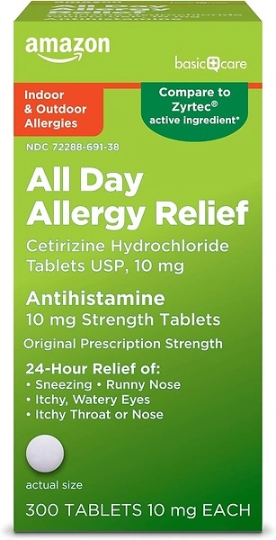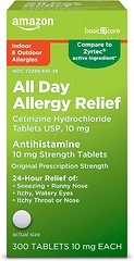 Amazon Basic Care 24 Hour Allergy Relief, Cetirizine Hydrochloride, 10 mg, 300 CountONLY $7.75 (reg. $22.72) shipped!