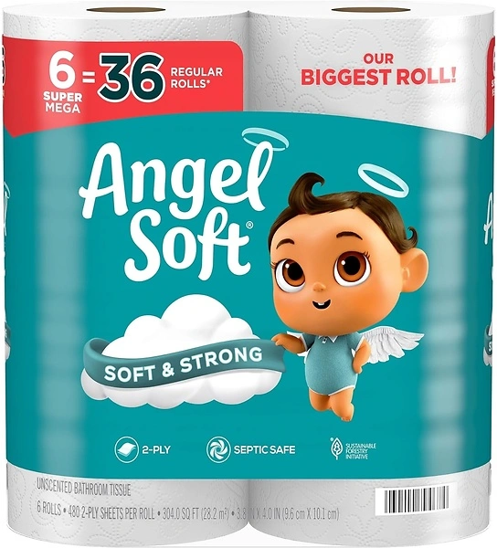 Angel Soft Toilet Paper, 6 Super Mega Rolls, Soft and Strong Tissue as low as $6.54 (reg. $9.79) shipped!