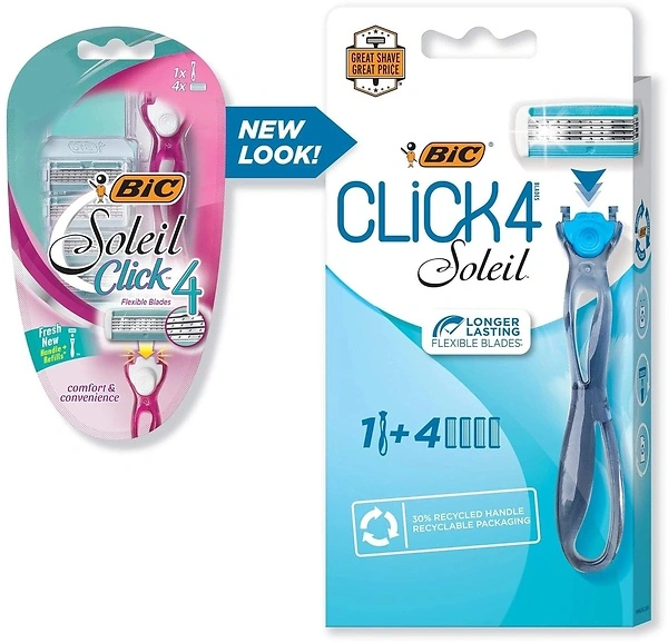 BIC Soleil Bella Click Women's 4-Blade Disposable Razor, 1 Handle and 4 CartridgesONLY $8.75 or $2.19/blade + handle (reg. $10.99) shipped!