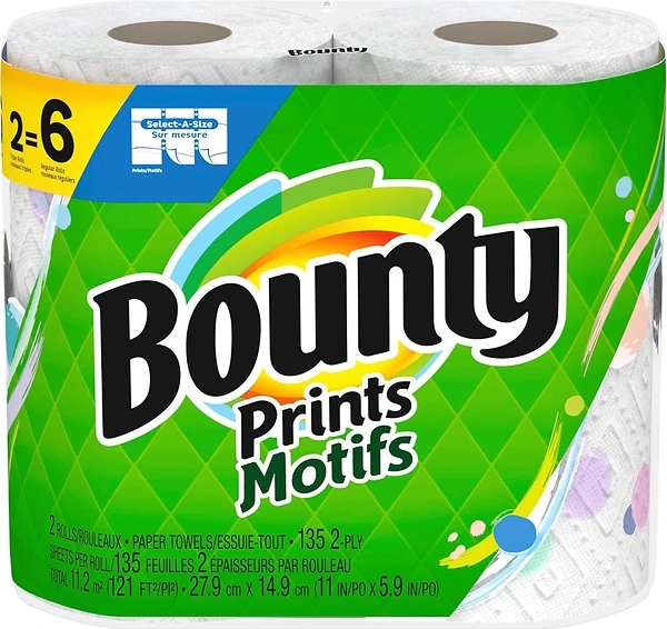Bounty Select-A-Size Paper Towels, Prints, 2 Triple Rolls, 6 Regular Rolls