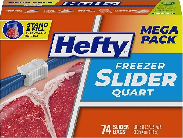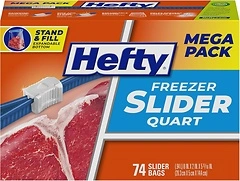 Hefty Slider Freezer Storage Bags, Quart Size, 74 Countas low as $5.61 or 8¢/heavy duty freezer bag (reg. $12.79) shipped!