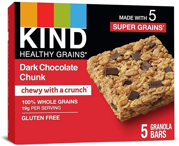 KIND HEALTHY GRAINS Dark Chocolate Chunk Bars, Gluten Free Bars, 1.2 OZ Bars (40 Count)