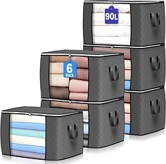 90L Large Storage Bags, 6-Pack, Foldable, Reinforced Handle, Gray.ONLY $18.99 or $3.16/large storage bag (reg. $44.99) shipped!