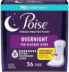 Poise Overnight Incontinence & Postpartum Pads, 8 Drop Extra Coverage, 36 Countas low as $11.82 (reg. $23.99) shipped!